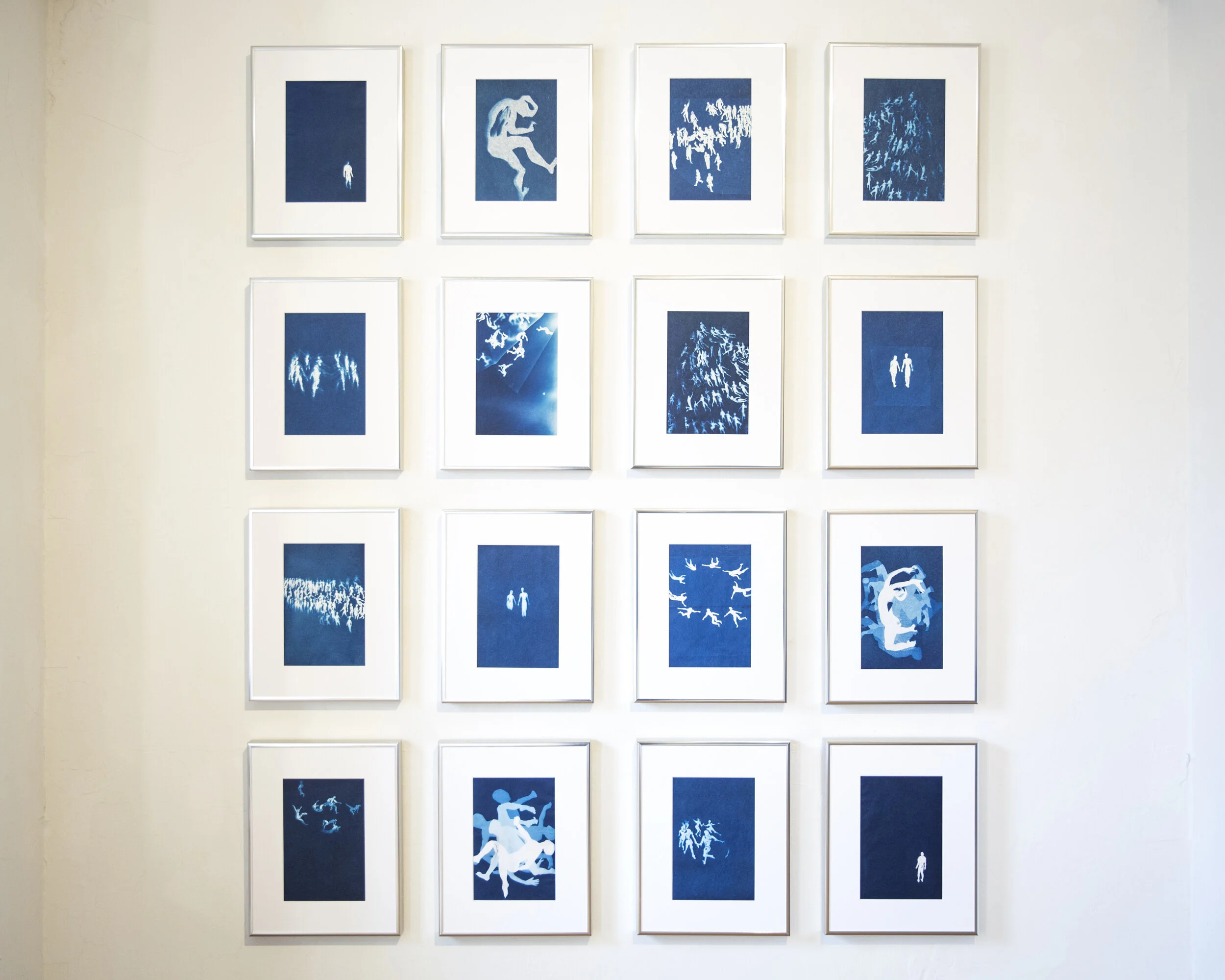 如果以韩沁自己的作品来总结这一次展览,那一定是她的小画幅系列蓝晒作品。这一套作品没有一个总体的标题;它们包括了《在路上》,《随》,《落》,《君子之交》,《甘若醴》等多个系列。之所以从这些小画幅系列挑选出数个有代表性的作品,并将它们平行呈现于展览空间中,是因为它们仿佛是人生状态、世界运行的一个个凝固瞬间。虽然每个剪影看似微小,但多个数量聚集在一起,就形成了一幅包罗万象、百态丛生的浮世画卷。这幅画卷没有起点,也没有终点,它们只是不同状态的平行呈现;而韩沁在她的未来思考和艺术道路上,也充满着不被限定、不断延伸的可能性。
