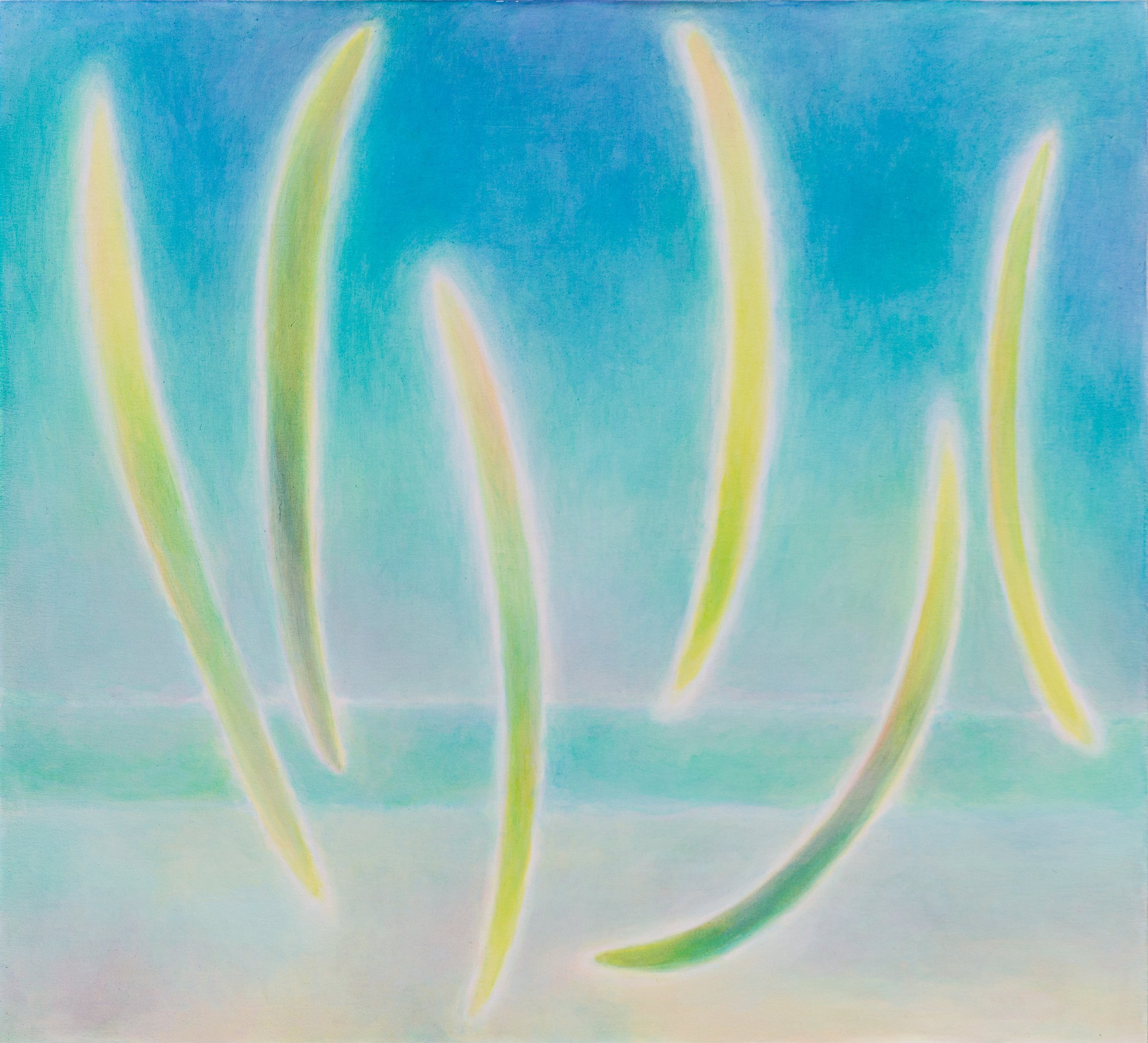 The dominant tranquility of the ocean reigns most of the time and space throughout Shuling Guo’s voyages. The ocean weaves a soft and distant whisper with its faraway and melodious sound of winds, waves and animal calls, and nurtures coruscating fluxes of light and colors under its calm atmosphere. Immersed in this Eden, Shuling Guo has devoted herself to exploring the realm of Sotto Voce in her works. Her images appear simple and pure, but a closer look at the details reveals a myriad of different color evolutions within even the most minute of scales blended seamlessly into one another. In her previous phase of work, the colors of her works were generally high in brightness and low in saturation, with layers of pigments of gentle color schemes rendered. Her subjects were mostly parts of real scenes, comparatively abstracted by the enlargement and cropping of the framing. While at the current stage of her work, she continues to scrutinize and refine her precise and complex color technique, yet often arranges a semi-abstract form within an empty overall picture. This form, perhaps distilled from a cloud, a few flowers, or a speck of light, provides a visual focus and a mysterious ambience to the picture with waves of colors. Some works inherit the low-saturation color palette, such as Sotto Voce-Luperon, Dominican Republic and Sotto Voce-Saint.Pierre, Martinique-1, which are inspired by sunlight that are refracted by glass and separated into different colors. The color range of these two works is precisely controlled, with a pale refractive iridescence under a subtle, seemingly unnoticeable gradation that can only be observed upon a closer inspection of the images. Other works reflect Shuling Guo’s unprecedentedly audacious attempt in color use. Two examples are Sotto Voce-Exuma, Bahamas and Sotto Voce-Long Island, Bahamas, which employ relatively bold colors that are immediately noticeable at first glance. The variety of color choices greatly increases the difficulty of color rendering, but Shuling Guo’s final images retain a high level of virtuosity in harmony.